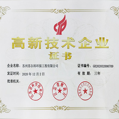榮獲“江蘇省民營科技企業(yè)”稱號;承接并完成蘇州亨冠零排放項目;承接并完成海默拉特一體化,完成COD30萬的廢水達標(biāo)排放項目;