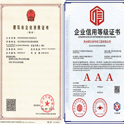 公司取得中華人民共和國住建部頒發(fā)的建筑機電安裝工程和環(huán)保工程專業(yè)承包三級資質(zhì),獲得3A級企業(yè)信用評價等級證書,標(biāo)志著公司的軟硬實力和信譽度的提升。